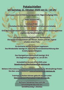 Am 13. Oktober konnten wir zum 52. Pokalschießen 6 Mannschaften aus Deizisau begrüßen. Geschossen wird mit dem kleinkalibrigen Sportgewehr, liegend aufgelegt. Die Scheibe ist 50…